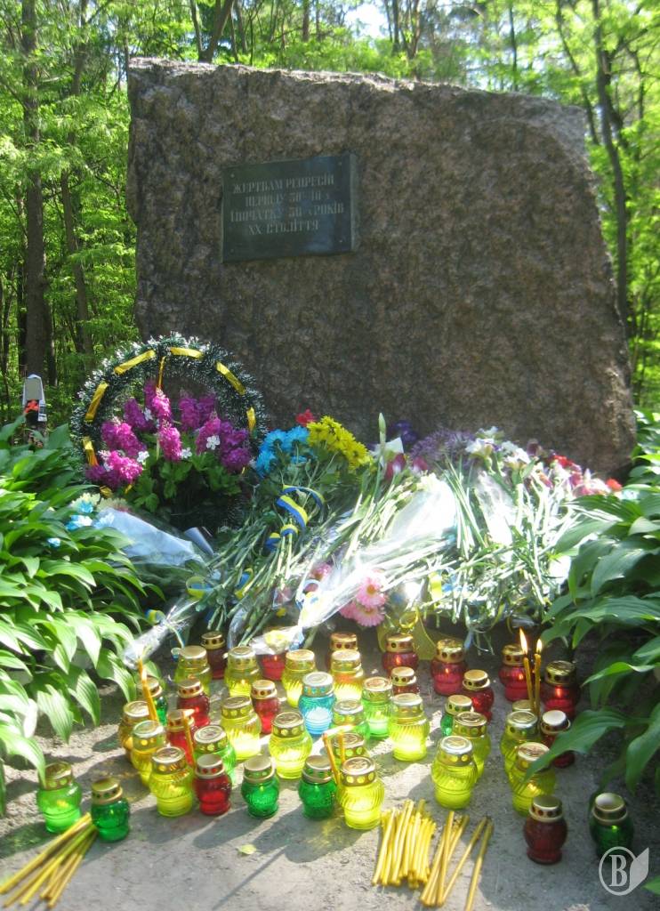 У пам’ять про невинно розстріляних та закатованих громадян біля пам’ятного знаку «Жертвам репресій періоду 30-40-х і початку 50-х років ХХ століття» встановили свічки.