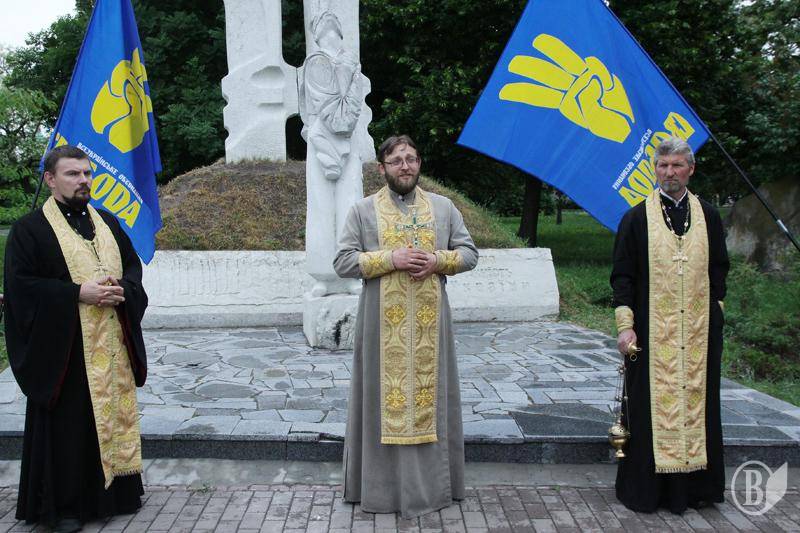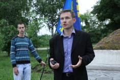 По завершенню панахиди до присутніх звернувся голова Деснянської районної організації ВО «Свобода» в м. Чернігів Євгеній Малецький.