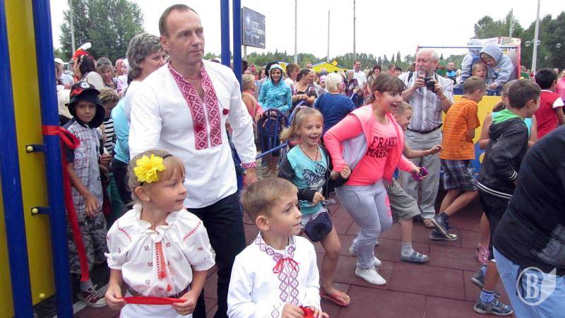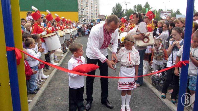 Після двох годин веселих конкурсів та ігор настав апогей свята – момент, якого чекали усі. Під бій барабанів, у супроводі народного депутата України Владислава Атрошенка до дитячого майданчика підійшли двоє малюків у національних костюмах. Саме дітям було доручено перерізати символічну стрічку і відкрити дивовижний дитячий комплекс на Масанах.