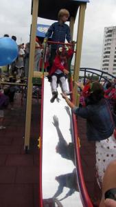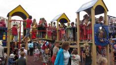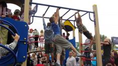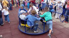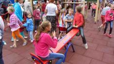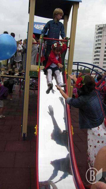 Після перерізання стрічки утримати дітей було неможливо. Під дощ з мильних бульбашок вони ринулися на майданчик, щоб випробувати усі гойдалки та елементи комплексу.