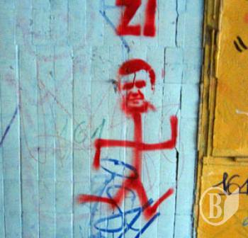Изображение похоже на портрет Президента Украины Виктора Януковича уже добрых 2 недели красуется на стенах подземного перехода в Чернигове.