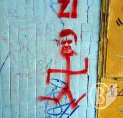 Изображение похоже на портрет Президента Украины Виктора Януковича уже добрых 2 недели красуется на стенах подземного перехода в Чернигове.