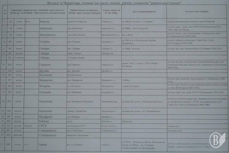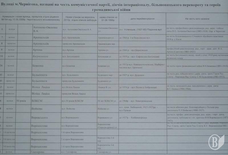 Хтось дотепний пожартував, що у Чернігові кількість вулиць імені «радянських героїв» сягала 30%, як у воєнному поселенні 1-ї половини 20-го століття.