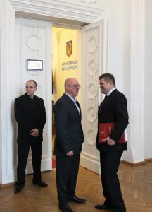 З трибуни сесійної зали чернігівської міськради після відкриття тридцять п’ятої сесії шостого скликання депутати від «Батьківщини» і КПУ Русін і Петрущенков виступили з промовами про євроінтеграцію.