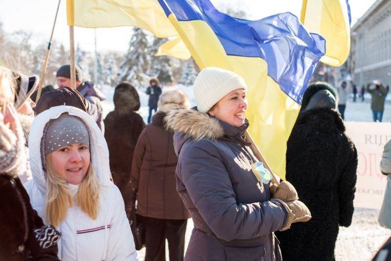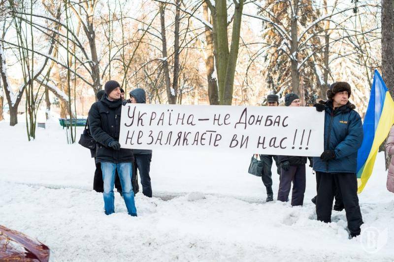 Несли и держали лозунги «Украина не Донбасс – не напугаете вы нас», «Киев – мы с тобой!», «Защитите общество!»,