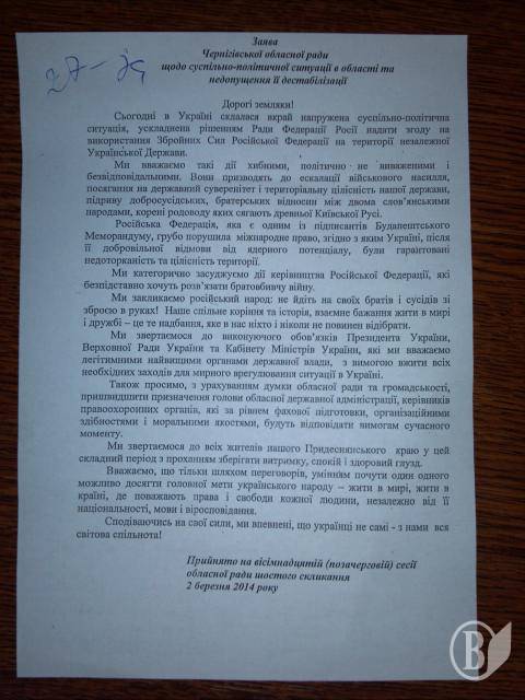 4.03.2014 Звернення: Закликаємо Україну згуртуватися проти авантюри Путіна