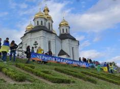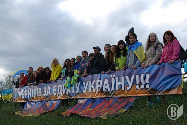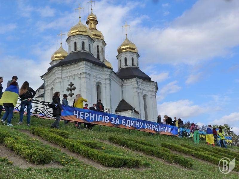 Вчора, 17 квітня, громадський рух Вільний Чернігів разом з медичним загоном самооборони та громадськими активістами повісили на в'їзді до Чернігова біля Катерининської церкви банер з написом: "ЧЕРНІГІВ ЗА ЄДИНУ УКРАЇНУ!!!".