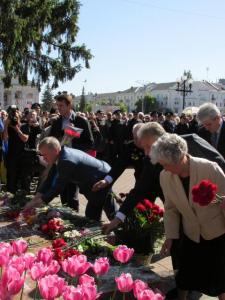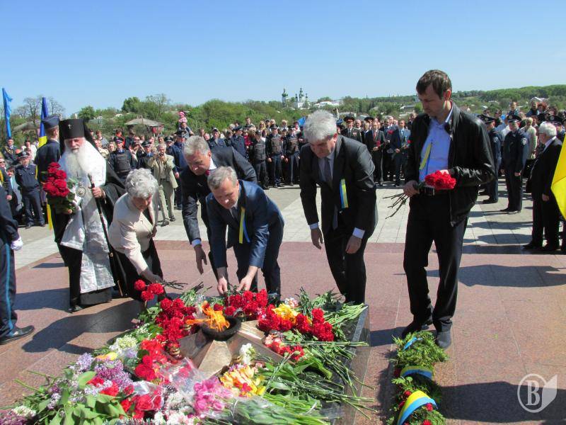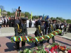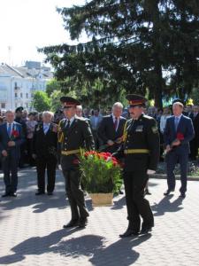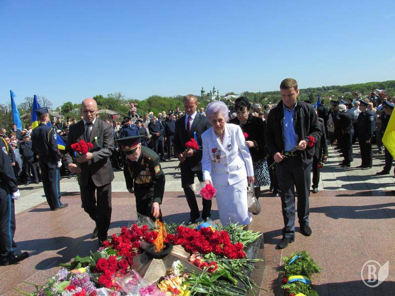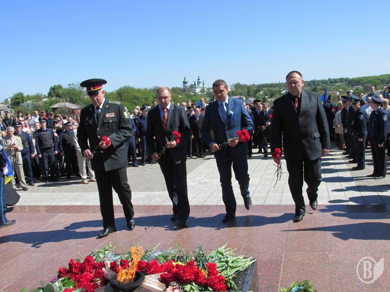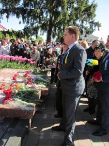 Торжества начались у Красной площади в сквере имени Попудренко. Павших воинов почтили председатель облгосадминистрации Владимир Ивашко, председатель областного совета Николай Зверев, народные депутаты Украины Валерий Дубиль и Владислав Атрошенко, городской председатель Александр Соколов.