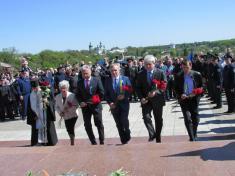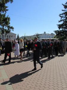 Далее шествие переместилась к Мемориалу погибшим воинам на Болдиной горе. Перед собравшимися выступили народные депутаты и минутой молчания почтили память павших.