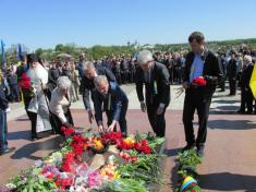 Вместе с ними цветы к Братской могиле возложили ветераны вместе с сотнями рядовых черниговцев. Немало было и детей, однако почтить павших на фронтах Второй Мировой их привели родители. Обошлось без организованных «живых цепей».