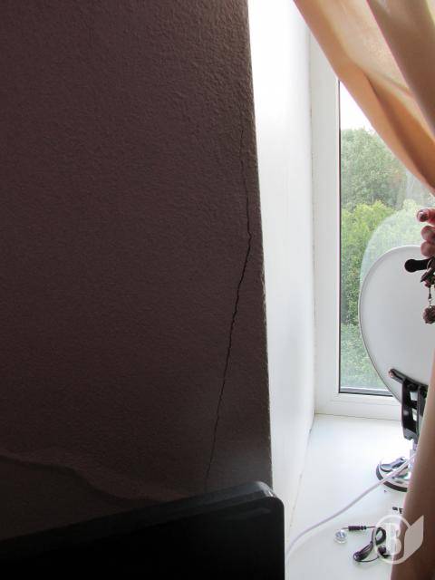 Отметим, что по дому пошли немаленькие трещины, как в квартирах, так и в подъезде и на фундаменте.