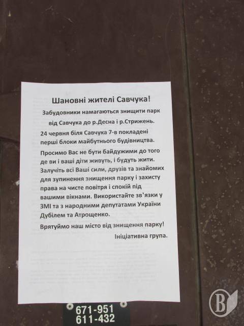 Когда готовился материал, стало известно, что прокуратура Чернигова направила в адрес начальника Госэкоинспекции в области и Госинспекции сельского хозяйства требования о проведении проверки экологического и земельного законодательства при выделении земельного участка на Савчука 7-в, а также законности его использования застройщиком.
