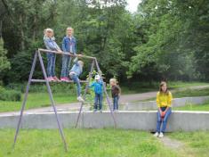 Работники «Укрсивербуд» огородили место будущей застройки бетонными плитами, прямо под детской площадкой. Рубить деревья пока не решились, однако, как оказалось, имеют на это законные основания.