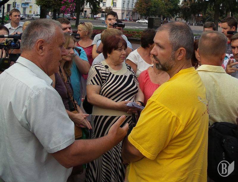 Цікавий погляд колег , яі подають чітку хроногію подій цієї акції на захист вкладників "Демарку" 12 серпня у сквері імені Попудренка.