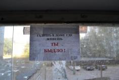 В дополнение ко всему этому, надпись на одном из окон: «Гадишь в доме, где живешь - Ты быдло!», выглядела весьма комично.