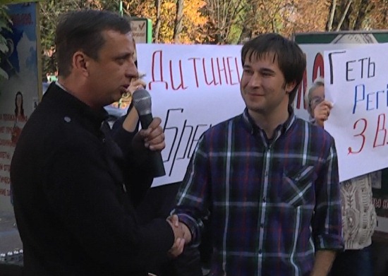 К пикетчикам вышли журналисты и директор «Детинца» Александр Ломако. Бондарев рассказал однако, что в 2004 году они вместе с Ломако выступали против каналов-лгунов, которые агитировали за Януковича и показывали ложь на кандидата в президенты Украины Виктора Ющенко.
