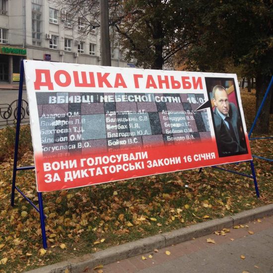 Доска позора была направлена против коррупционеров, старых регионалов и народных депутатов, которые голосовали за диктаторские законы 16 января.