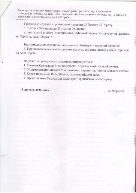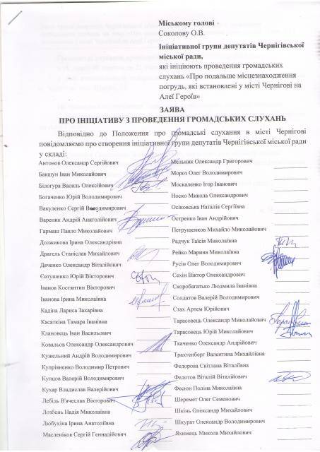 За словами депутата міської ради В'ячеслава Лебедя, причиною проведення цих слухань стала напружена соціальна дискусія навколо погрудь, які встановлені у місті Чернігові на Алеї Героїв.