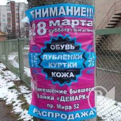 Донецькі підприємці обклеїли Чернігів тисячами оголошень про продаж взуття, «дублянок» і «шкіри» напередодні 27-28 березня.