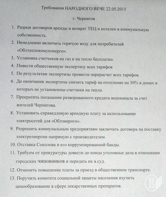 7. Припинити погашення розкраденого кредиту водоканалу за рахунок жителів Чернігова.