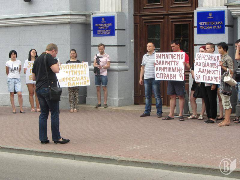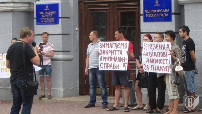 Участники пикета держали плакаты «Остановите подкуп избирателей», «Остановим политические преследования», «Березенко к ответственности за подкуп», «Требуем закрытия уголовного дела». Последний плакат, наверное касался политического преследования «Народного контроля», а не оппонента Андрея Глабы на выборах в Верховную Раду Украины.