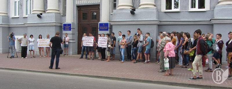 Уже в 10 часов около 50 активистов «Народного контроля» во главе со своим вожаком проводили пикет под городским отделом милиции.