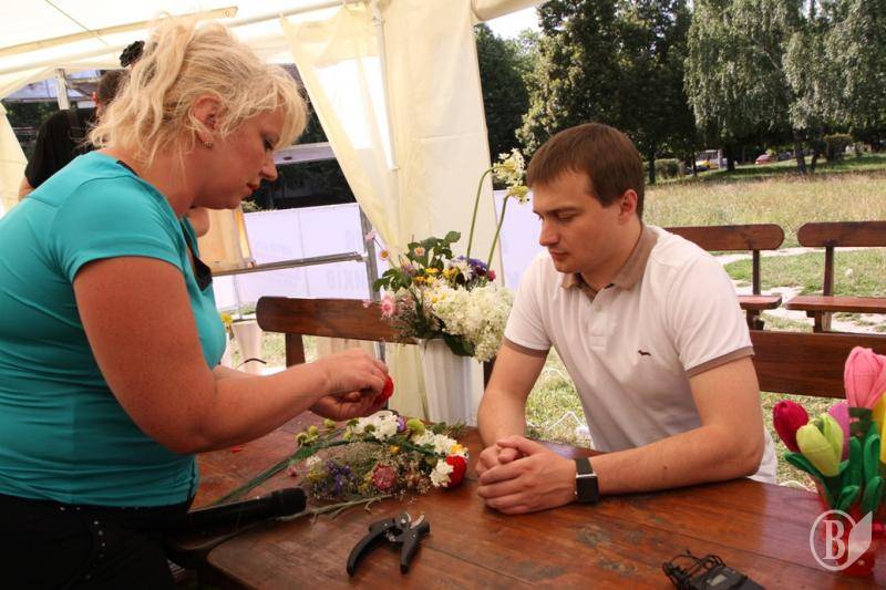 Дітям літня школа чарівників припала до душі. – Мені дуже подобається, що ми тут працюємо із живим матеріалом, - ділиться враженнями восьмирічний Денис. – Я сьогодні сплів віночок із троянд, ромашок та жоржин. Подарую його мамі.