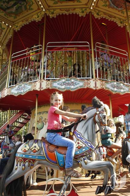 З десяток атракціонів на будь-який смак - від дитячої залізниці, до вишуканої каруселі з кіньми у французькому стилі.