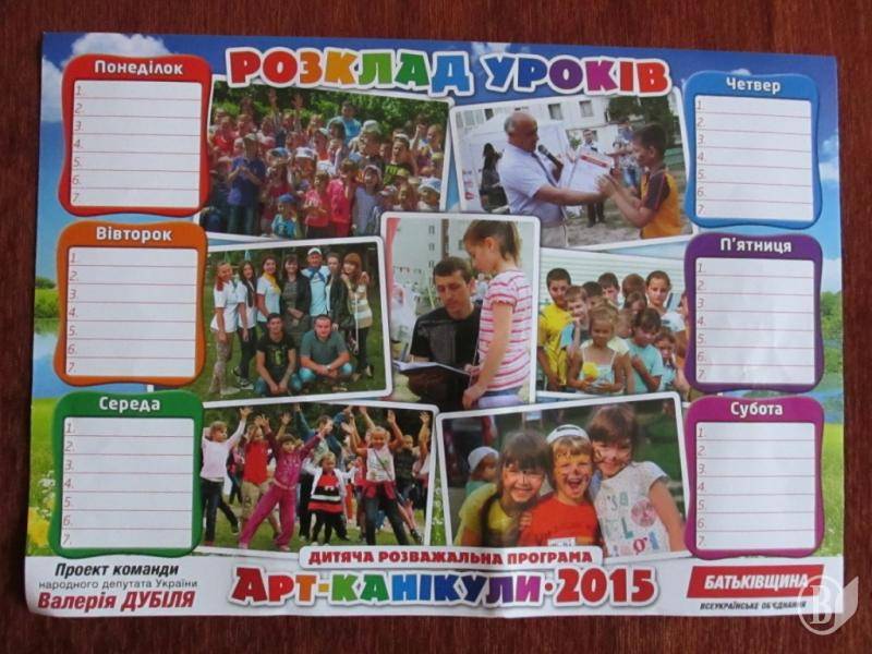 Також про діток згадали і представники ВО «Батьківщина», подарувавши школярам невід’ємний атрибут навчального процесу – розклад уроків.