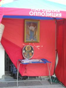 Иконы под звездами Витренко, крестные брожения под красными флагами, парни в рясах с томным видом лица и пакетиками Партии регионов и коммунистическая ненависть вместо любви.