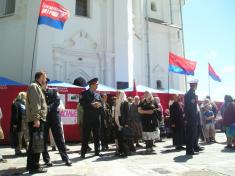 Жаль, что на фотографиях узнаем много местных лиц. Отметились, так сказать, и в шабаше под храмом, и в событиях Антимайдане. Вот только милицию и ее начальников еще больше жалко. Одна из фотографий создает впечатление, что московская марионетка Кауров строит начальника черниговской милиции Катеринчука. Но то наверно только впечатление, хотя фотографии говорят сами за себя.