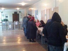 Поток избирателей становился все большим и уже в 9 часов зал для голосования был почти полным. Пика наплыв избирателей достиг где-то в 10. 30, когда за бюллетенями в очередь выстроились по 10-12 людей. Тем, кто получил избирательные бланки, приходилось так же ожидать около кабинок, чтобы поставить отметки. Бабушки и дедушки часто терялись, не зная, где и как заполнить. Бюллетени падали на пол, а однажды – едва не исчезли. Немолодой человек, взяв свои, недосчитался какого-то. Стали искать всем миром, с трудом нашли. И не где-нибудь, а на столе, у члена комиссии, которая пресловутую бумажку и выдала.