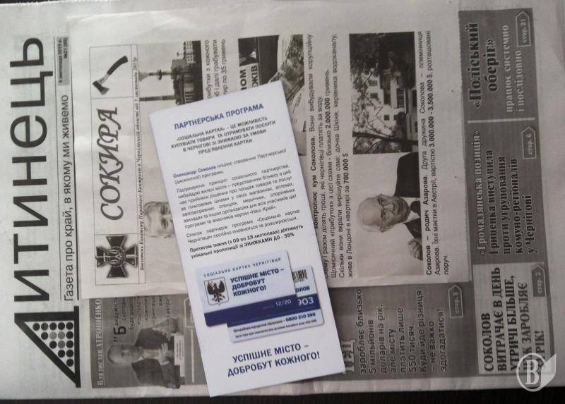 Так, разом із газетою «Дитинець», яку пов’язують з нардепом Атрошенком, в поштові скриньки жителів Чернігова вкидають «чорну» анонімну листівку «Сокира», в якій написана відверта брехня про мера Олександра Соколова.