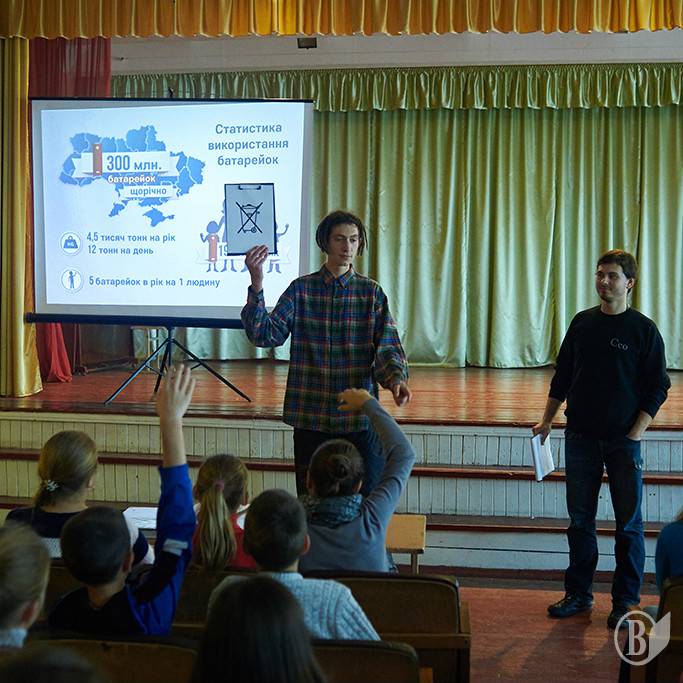 Поскольку в мае 2015 года активисты «Экко Город» установили боксы для сбора батареек в школах Чернигова, свои лекции они посвятили именно этой теме. Школьникам рассказывают об истории создание элементов питания, их вреде окружающей среде и здоровью людей, процессе переработки и вещах, которые можно изготовить из частей отработанных батареек. Поскольку лекции проходят в интерактивной форме, дети живо приобщаются к обсуждению, включаются в совместную работу и с интересом наблюдают за слайдами на экране. Красиво оформленная визуальная часть презентации помогает привлечь и удержать внимание слушателей, а также дает им возможность легче усвоить полезную информацию.