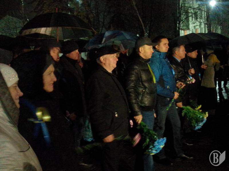 Попри надзвичайну негоду, холодний вітер та дощ на захід прийшло чимало патріотів, учасників Революції Гідності, бійців АТО, громадських діячів, а також офіційні особи з облдержадміністрації, новообраний міський голова Чернігова, наразі народний депутат Владислав Атрошенко та його колега по Верховній Раді Олександр Кодола. Проте, ніяких урочистих промов, нагороджень і вшанувань не було.