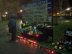 Акцію “Україна – це територія Гідності та Свободи» провели увечері 21 листопада на Алеї героїв у Чернігові активісти «Самооборони Чернігівщини», «Соколу» та облдержадміністрації.