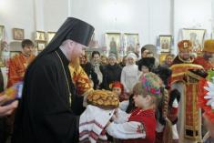 Хлібом і сіллю зустріли дітки свого владику за що отримали подарунки.