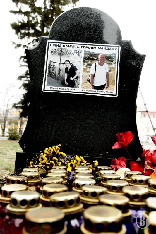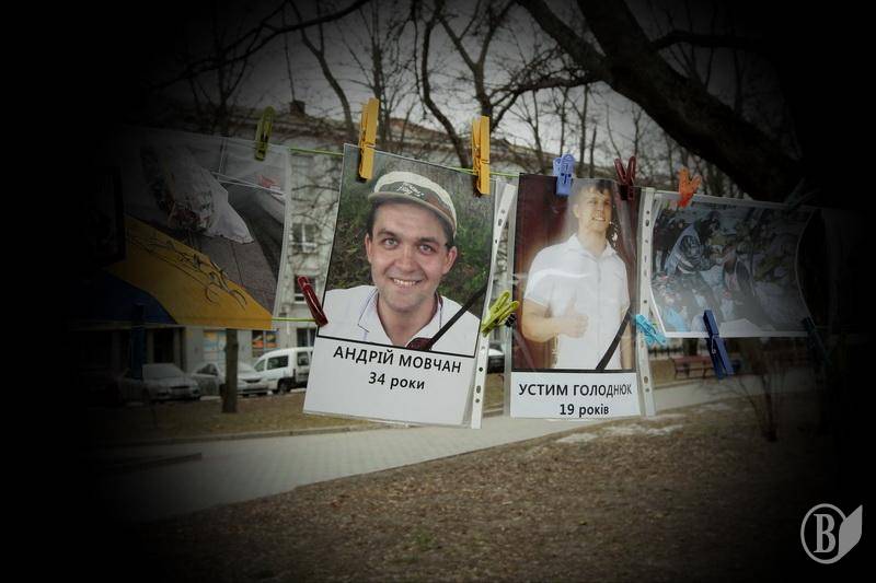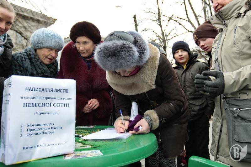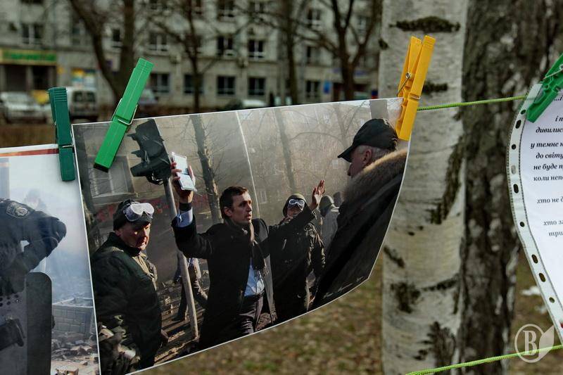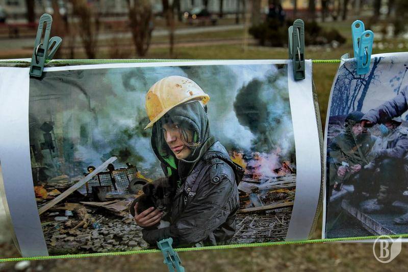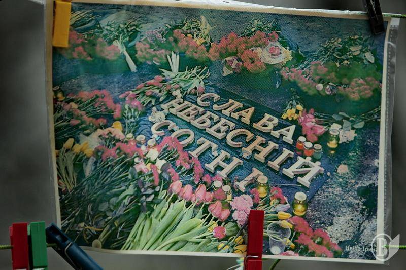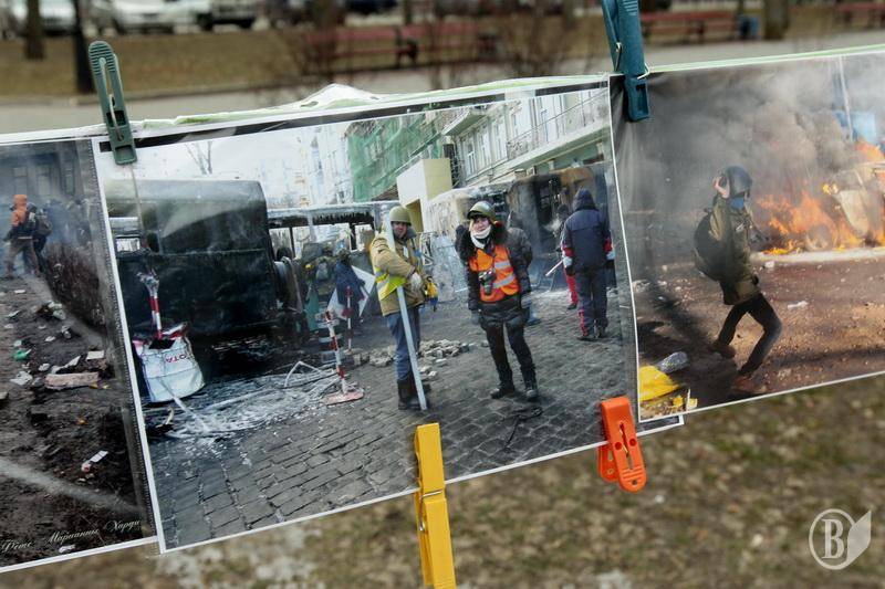 А неподалеку в сквере активисты выставили экспозицию фотографий черниговских фотокорреспондентов, которые воспроизвели в своих работах трагические столичные события.