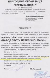 «Оскільки партійні боси всіх кинули, то давайте продемонструємо низову організацію. Одна з пропозицій – зібратися четвергового вечора о 18:00 і почати з громадських слухань, – попонує Віталій Назаренко. – Оскільки ми народ і з приміщенням у нас складно, то збираємось на сходах Драмтеатру. Чим більше нас прийде, тим гірше для влади і перевізників».