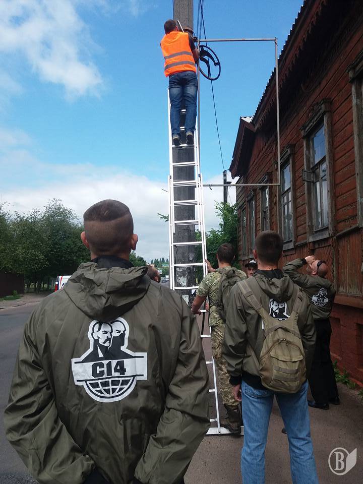 Вулиця Київська в Чернігові звільнена від іржавих решток радянської комуністичної символіки, яка висіла там на електроопорах.