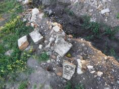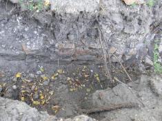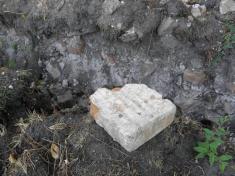 В тому самому місці, де в минулому році будівельники при викопуванні траншей пошкодили цегляні підмурки будинку мазепинської доби, нині знову видні давні стіни розрізані траншеєю і вивернуті цеглини «пальчатки».