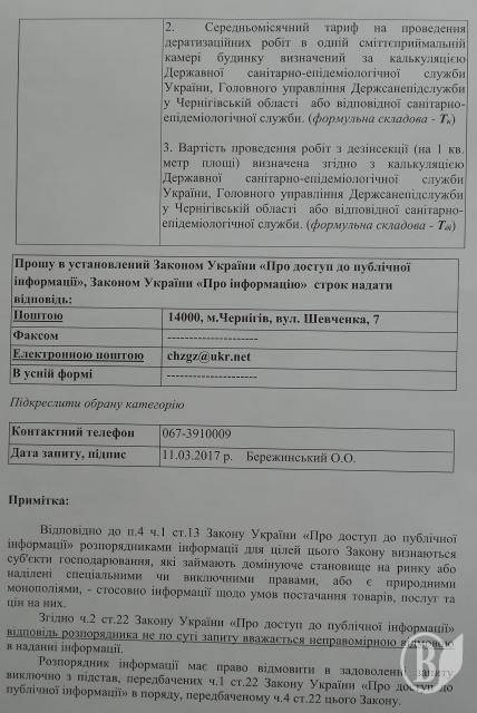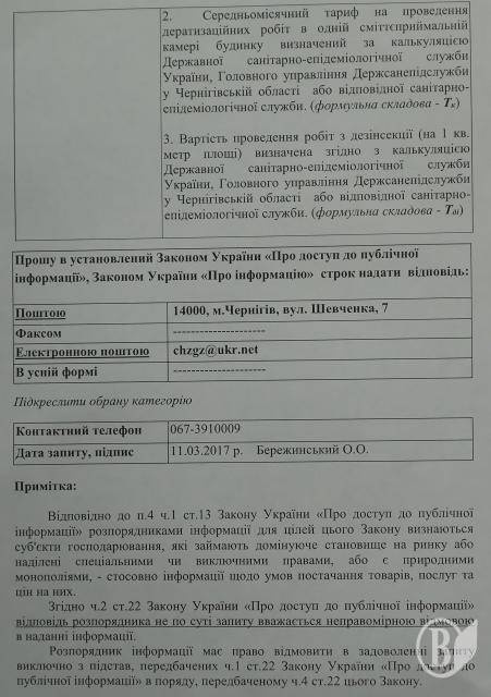Фактично підприємства, становище яких розпорядженням в.о. голови тервідділення АМКУ визнано монопольним у межах Чернігова, такої калькуляції не надали. При цьому вони зазначили, що ціна на послуги є договірною, а тариф на утримання будинків і прилеглих територій не є тотожним вартості послуг з дезінсекції.
