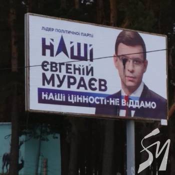 У Чернігові рекламний щит із зображенням Євгена Мураєва облили червоною та зеленою фарбами. Він є чинним народним депутатом України, лідером партії «Наші», а також потенційним кандидатом на пост Президента України. Про це повідомляють спостерігачі Громадянської мережі ОПОРА.