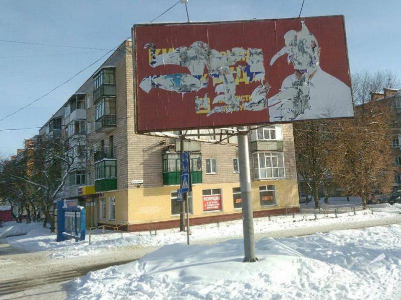 22.11.2018 У Чернігові білборд із зображенням Євгена Мураєва облили фарбою
