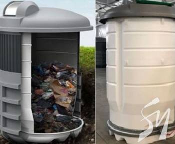 Їх будова наступна: основа суцільна пластикова, половина з якої знаходитися під землею. Наземна частина має оздоблення у вигляді пластикових лемелів. Кришка контейнера складається з двох частин: кришка з отвором барабанного типу та пластиковй накопичувач, що з’єднані між собою. Також під кришкою встановлений сенсор вимірювання об’єму сміття, що має GSM зв'язок та передає данні про накопичення та температуру оператору.Спустошення відбувається за допомогою сміттєвоза з краном-маніпулятором та за рахунок педального механізму, що розташований на дні накопичувача контейнера.