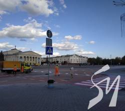 Знімають огородження, наносять розмітку, підправляють і миють клінкер – реконструкція центральної площі Чернігова завершується.
