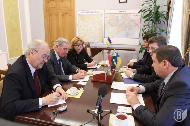Голова Чернігівської облдержадміністрації Володимир Хоменко провів зустріч з Надзвичайним і Повноважним Послом Королівства Нідерландів в Україні Пітером Яном Волтерсом та спеціальним представником Міністерства закордонних справ Королівства Нідерландів з питань програми Східного Партнерства Європейського Союзу Онно Хатінгом вант Сантом.