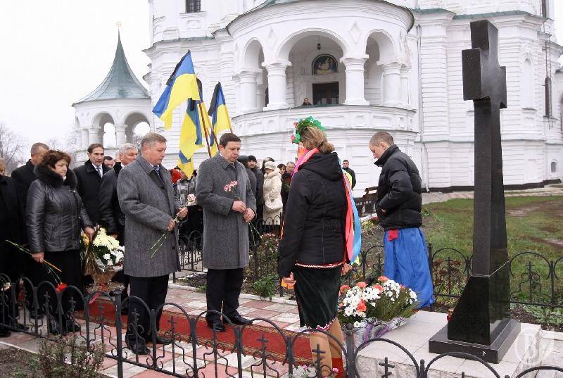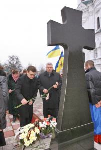 «Цього дня всією українською громадою глибоко сумуємо за мільйонами співвітчизників, що загинули в ті страшні часи. Незалежно від національності, партійної або релігійної приналежності – всіх громадян України об’єднує спільна пам’ять про мільйони безневинно загиблих – родичів, сусідів, односельців, замучених голодом. Протягом останніх років дослідниками та науковцями опрацьовано численні архівні документи, зібрано свідчення тих, хто пережив Голодомор. Видано багато робіт, присвячених трагедії голодомору. Ми тільки починаємо усвідомлювати розміри та масштаби Голодомору 1932-1933 років, який став чорною сторінкою нашої історії», - звертаючись до присутніх, зазначив голова облдержадміністрації Володимир Хоменко.