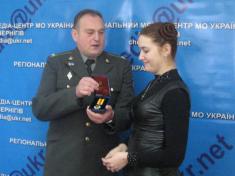 Представники регіонального медіа-центру Міністерства оборони України у місті Чернігові вручили відзнаку Міністра оборони України - медаль «За сприяння Збройним Силам України» старшому редактору відділу інформаційного мовлення творчого об’єднання телебачення Чернігівської обласної державної телерадіокомпанії «Сівер-центр» Наталії Кузьменок.