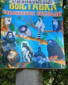 Запрошують російською мовою і на виставку карликових мавп, «прикрасивши» сотні, якщо не тисячі, стовпів у нашому місті з грубим порушенням Правил благоустрою. Відзначився «великим и могучим» на афішах і московський театр ляльок. А ось «Сбербанк Росії», як не дивно, виготовив вивіски українською і від того навряд чи щось втратив. Наші ж місцеві підприємці пишуть... казна-що.